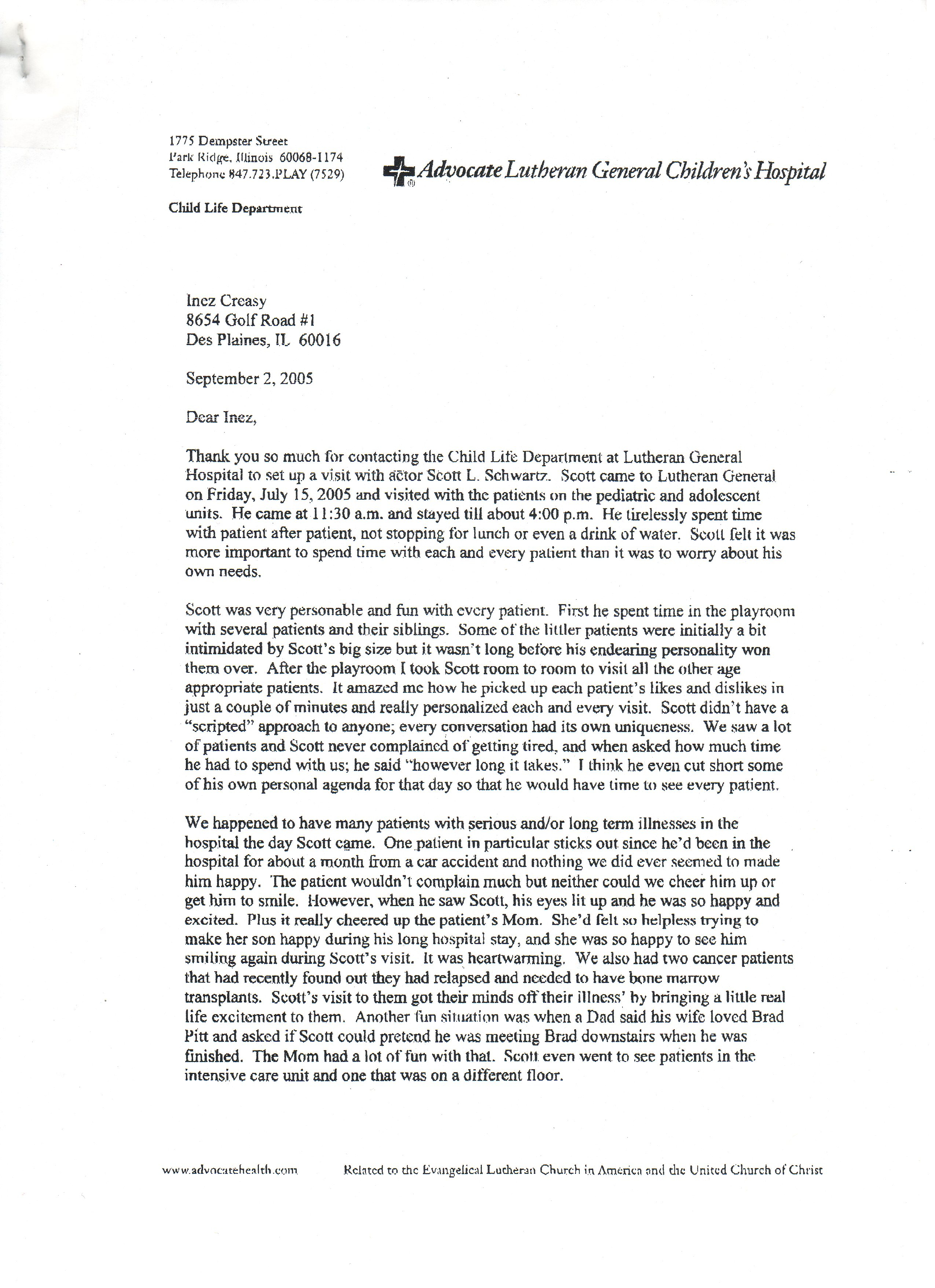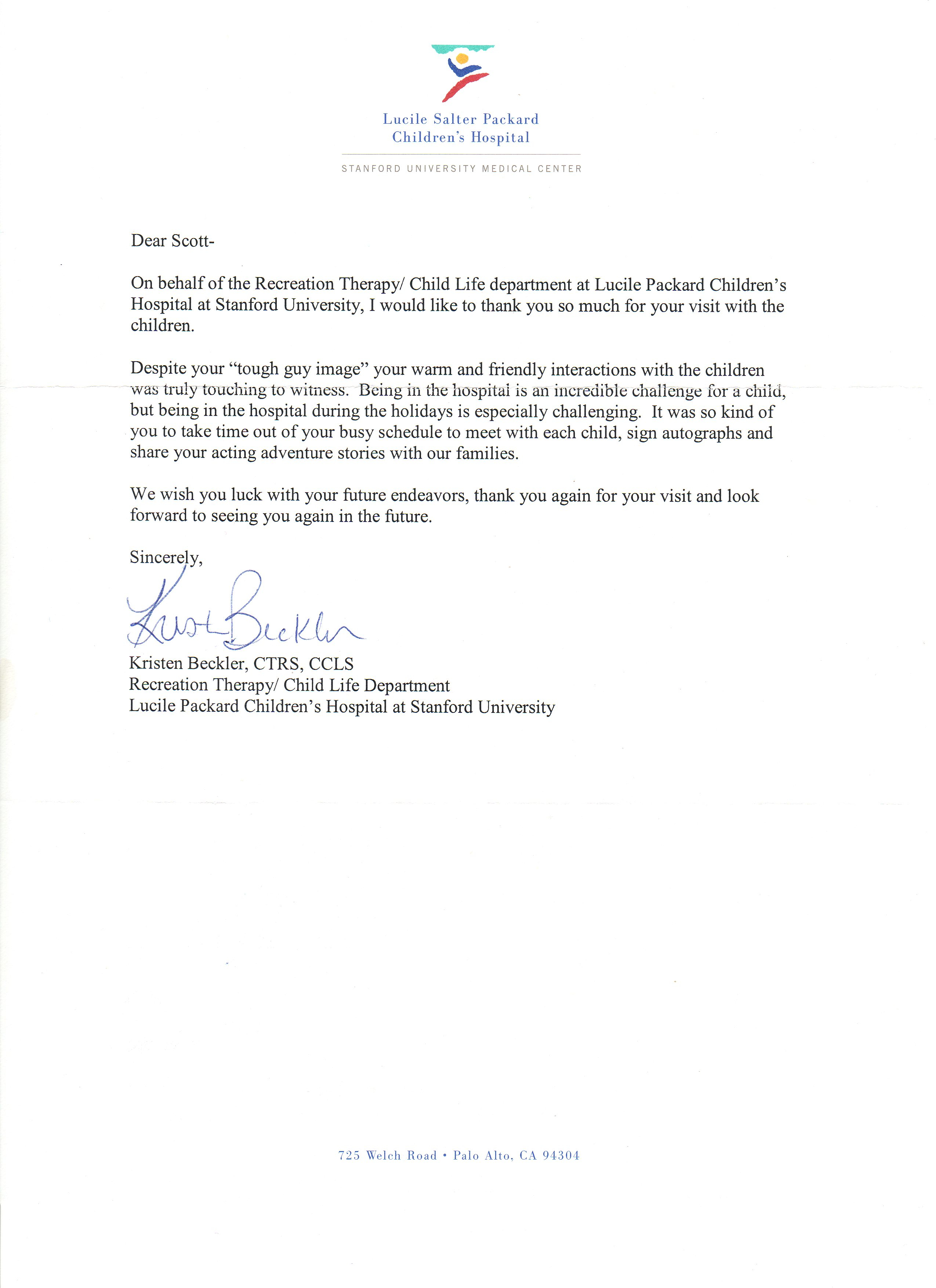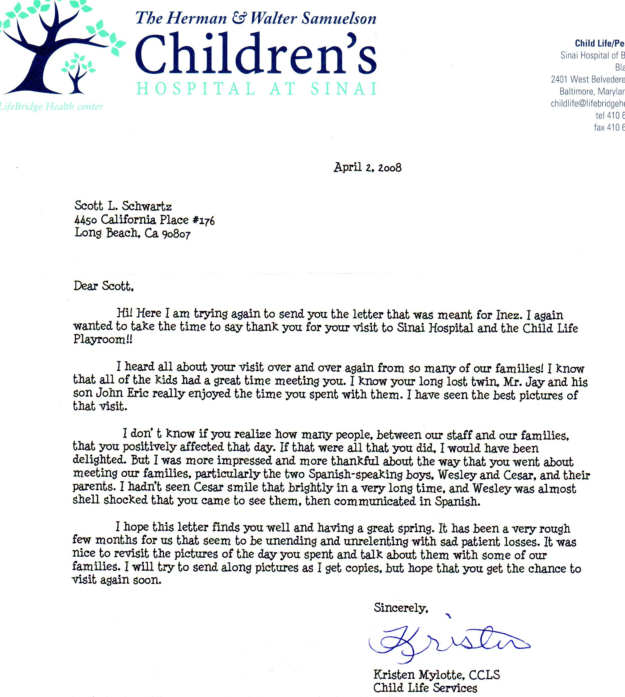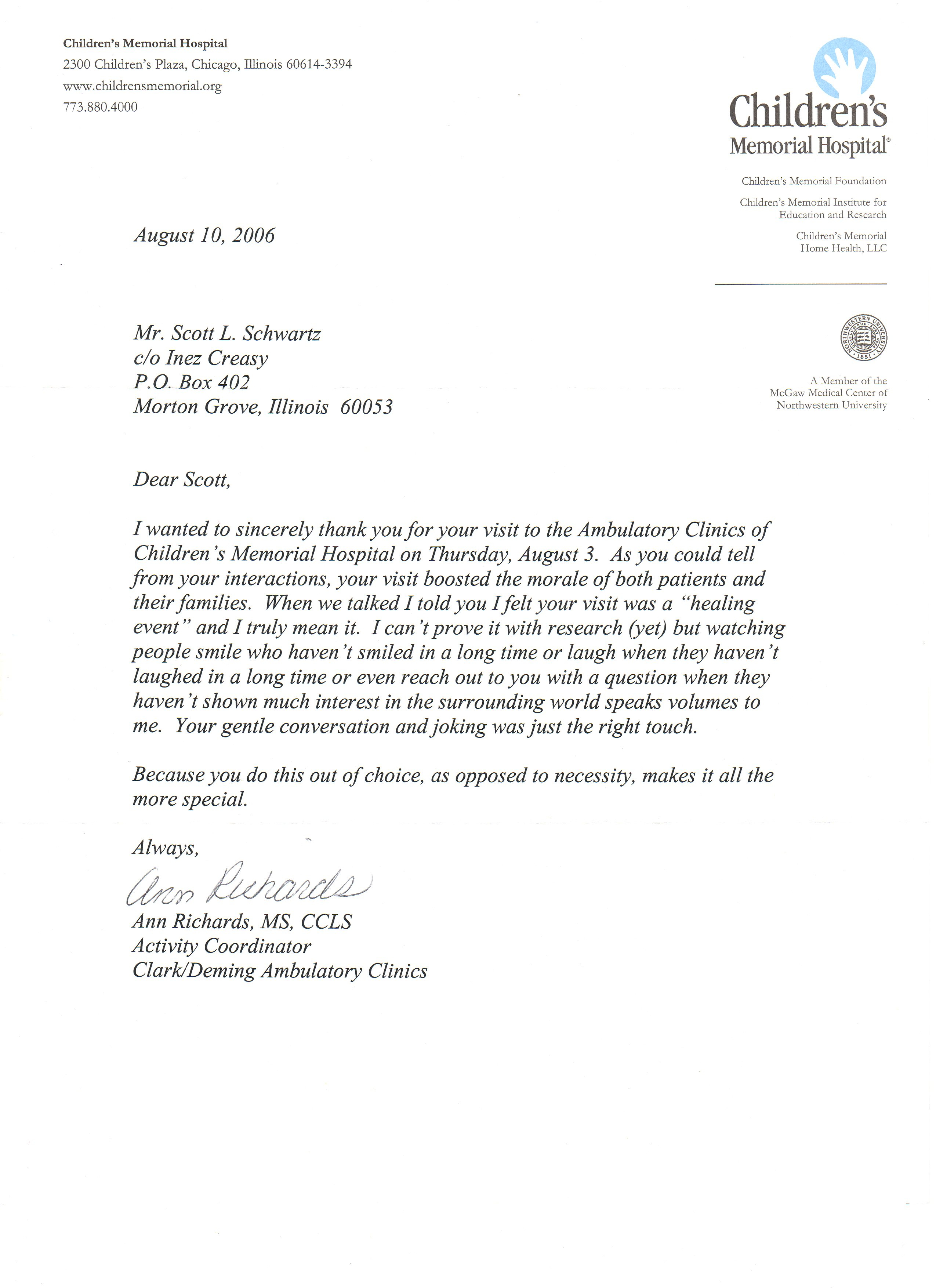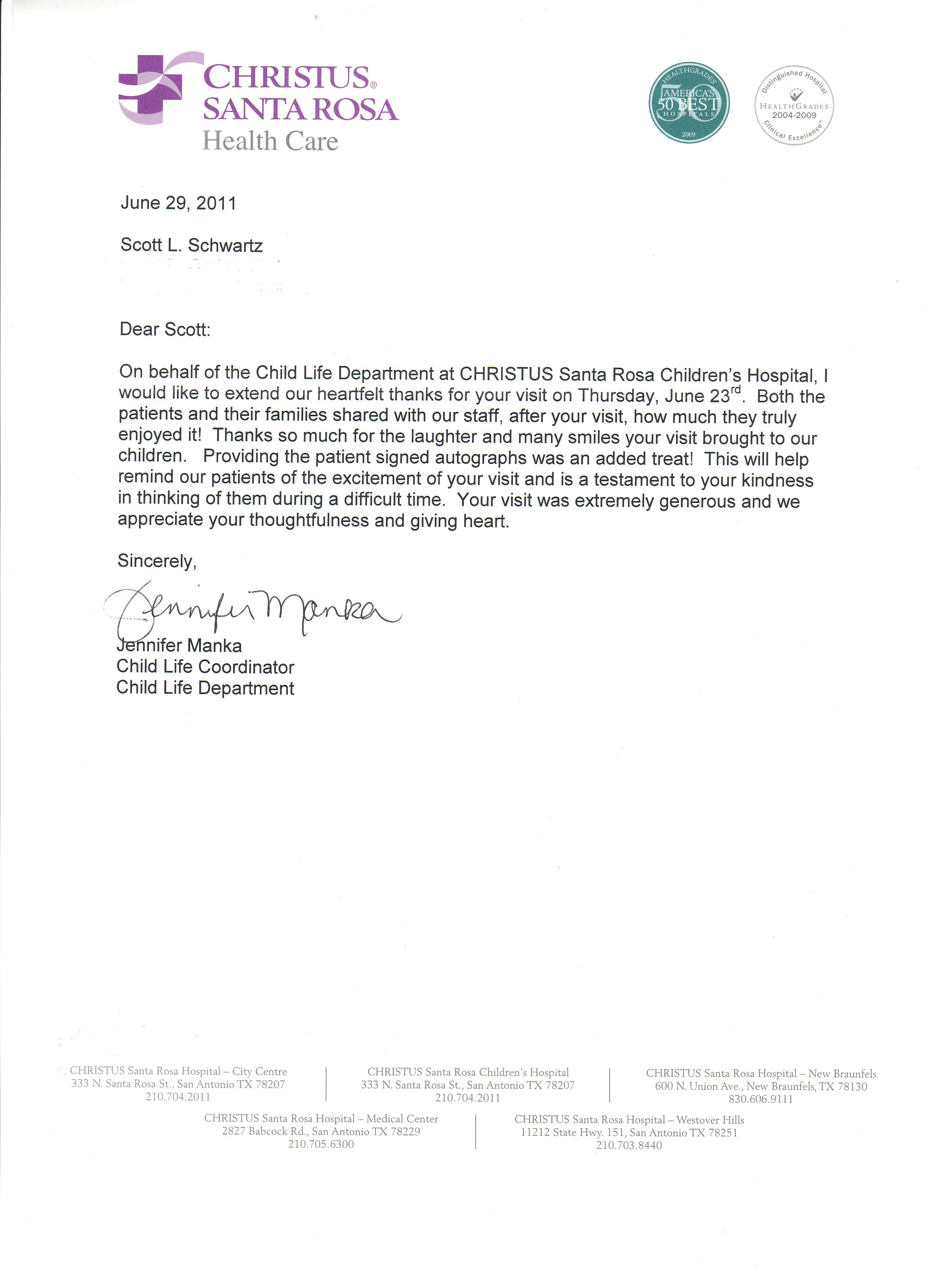 Thank you letters from past visits to Children’s Hospitals from all over the US that Scott L. Schwartz has visited: